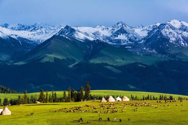 让我们走进新疆的自然风光,新疆地处亚欧大陆腹地,地形复杂多样,拥有壮丽的山脉、湖泊、草原和沙漠,这里有世界第二高峰珠穆朗玛峰的所在地——喜马拉雅山脉,有我国最大的内陆湖泊——博斯腾湖,有亚洲最大的沙漠——塔克拉玛干沙漠,还有世界著名的喀纳斯湖、天山天池等自然景观。
